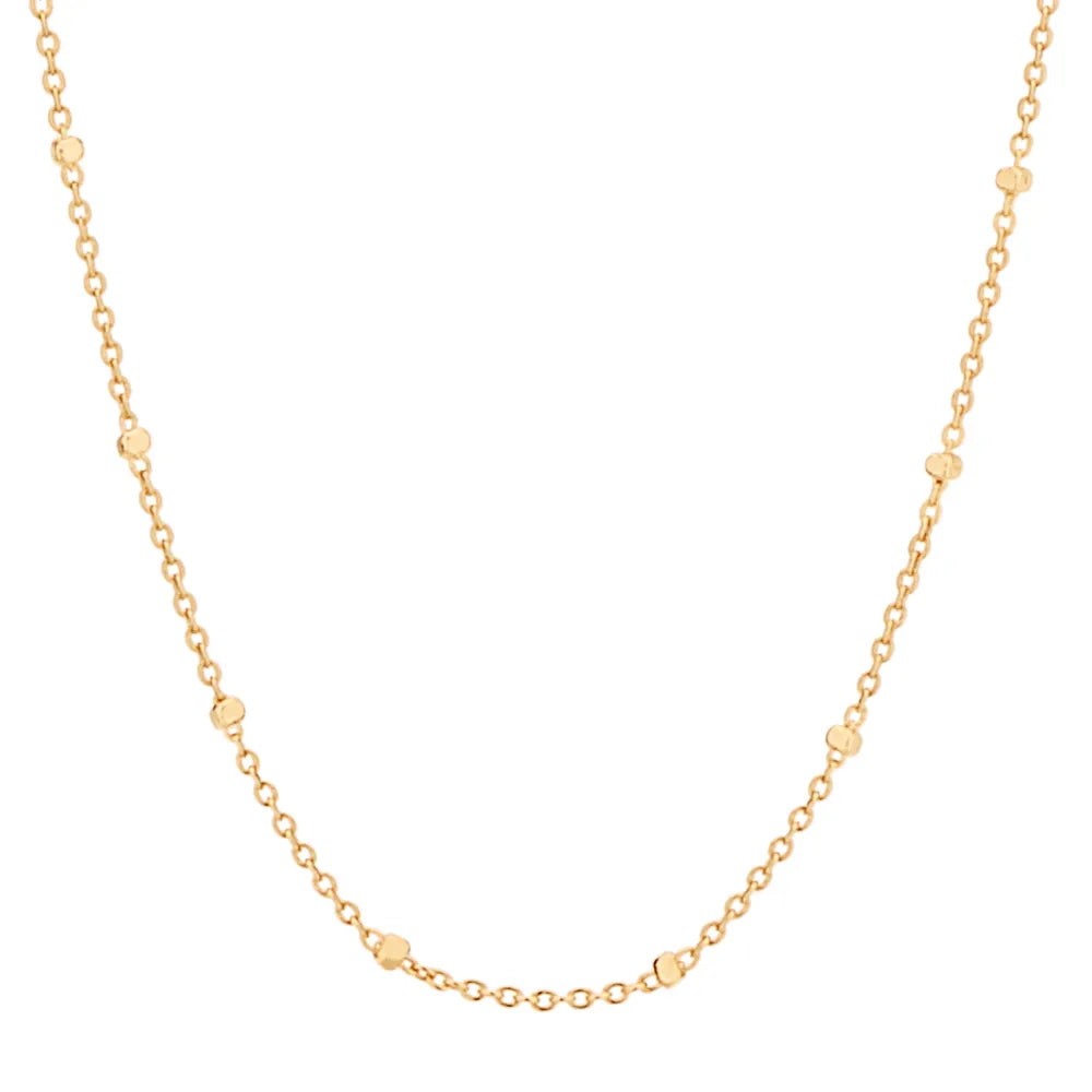 Choker necklace made of round link chain interspersed with "small cubes".