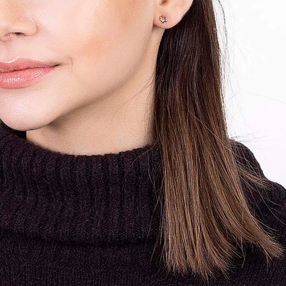 Children's solitaire star-shaped earring with crystal. Measures 0.5 cm.