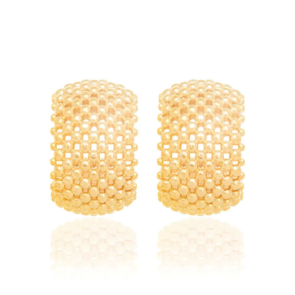 Half-hoop earring with spheres and openwork details. Measurements: 1.50 cm x 1.30 cm